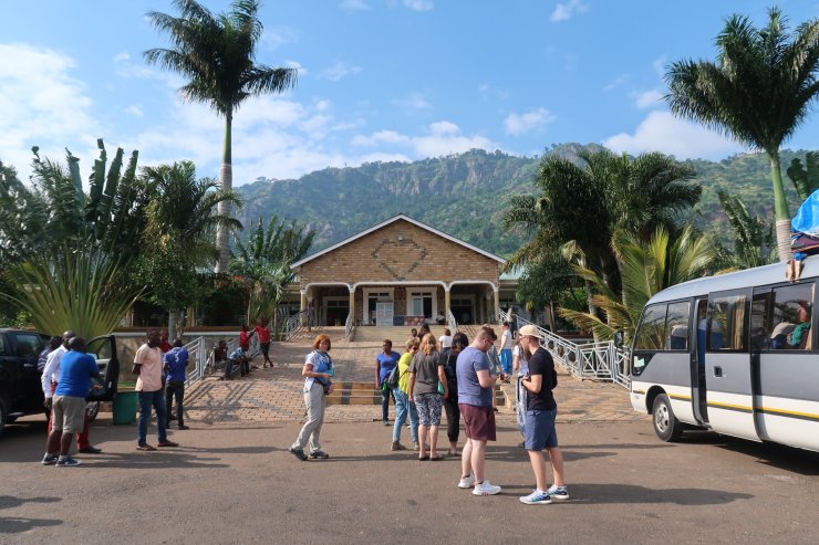 Grosse, hohe Berge tauchen nach ein paar Stunden auf, bis wir am Nachmittag bei einer schönen Lodge zu Mittag essen.
