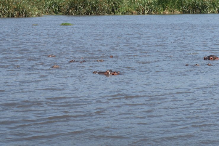 Hungrig sind wir endlich an unserem Picknick – Platz angekommen. Nicht nur wir konnten uns dort ausruhen sondern auch Nilpferde. Sie befanden sich mit dem ganzen Körper im naheliegenden See unter Wasser, und man konnte so leider nur die Köpfe sehen.