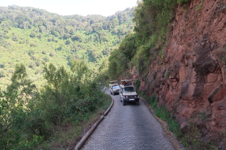Die Zeit vergeht schnell, und nach dem Picknick machten wir uns schon auf die Heimfahrt nach Arusha. Wir mussten natürlich wieder die 600 Höhenmeter des Kraters nach oben überwinden. Dies war angenehmer als zuvor, weil der Weg gepflastert war.